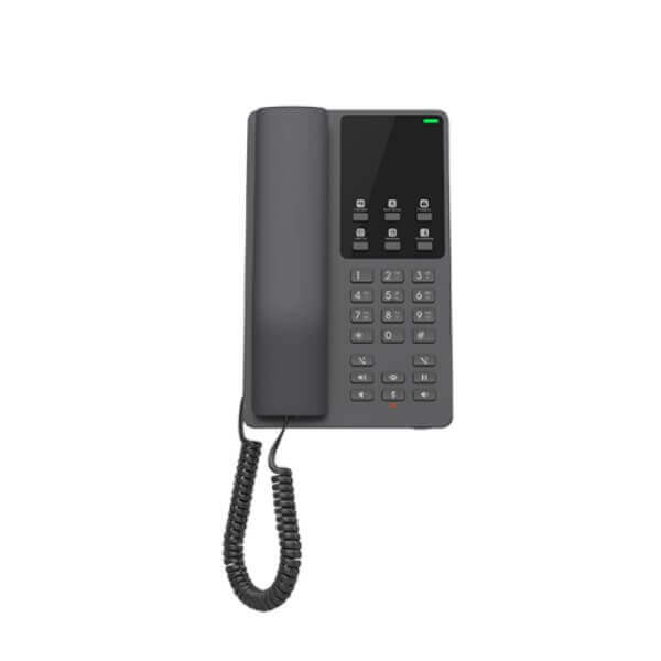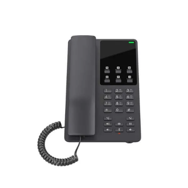 The Grandstream GHP621 Kuwait is easy-to-use IP phone for any hotel room that can be programmed and customized based on the needs of hotels and their guests. The GHP621 is a compact IP phone with a streamlined interface and a desktop phone design that can be customized based on the needs of hotels and their guests. It provides an HD speaker on the handset, 2 SIP accounts/lines, 10-speed dial keys, and six programmable keys ideal for deployment in hotels and resorts as well as many other similar environments that need a simple, sleek, and easy-to-use IP phone.